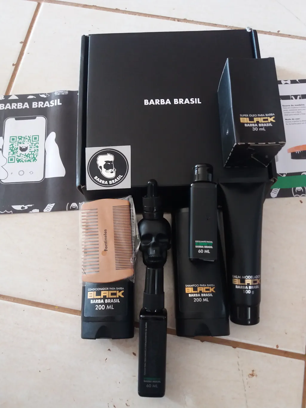 Esse kit contém os seguintes produtos: Shampoo para Barba 200ml, Condicionador para Barba 200ml, Balm para Barba 200ml e Super Óleo para Barba 35ml